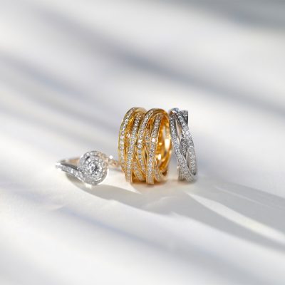 Omkranset av glitrende diamanter finner du midtstenen, skjønnheten og hovedattraksjonen i smykket. Balansen mellom midtstenen og de dekorative brilliantene rundt, gir det eksklusive uttrykket. Serien tilbyr mange ulike slipeformer.
