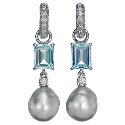 Øreheng i 18kt. hvitt gull med morganitt og briljanter