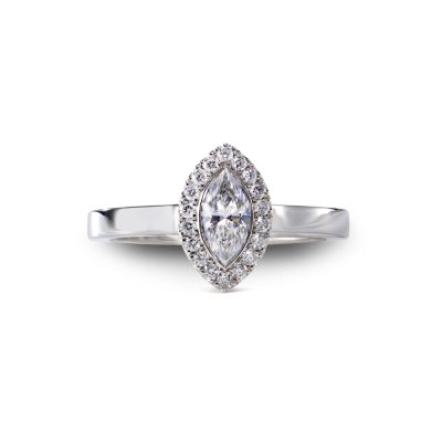 Ring i hvitt gull med navetteslipt diamant og briljanter